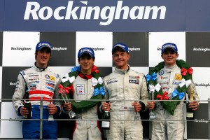 Brabham on the podium with race winner Jack Aitken, Mike Mason and series winner Seb Morris.