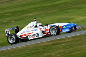 Invercargill, New Zealand (January 11, 2014) – A day of steady improvement saw Neil Alberico climb from a disappointing 17th on the tightly packed 23-car grid to 10th in the opening round of the 2014 Toyota Racing Series. The race, which was won by Russian Egor Orudzhev, was interrupted by one full-course caution and then ended prematurely, after 13 of the scheduled 15 laps, due to another incident.