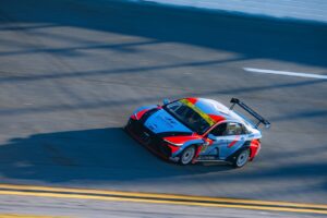 I didn’t know what to expect going into qualifying, as the team chose me to qualify the car and start the race. I struggled to extract the most out of the tire at its peak and failed to find a decent tow, which is so important at Daytona, putting me ninth at the end of qualifying. Most did not expect me to qualify too much higher, with it being my first race and all, but as always, my standards were astronomically high for myself. As a result, I was feeling down about not qualifying higher up the grid. As I sat in the team hauler looking visibly disappointed, team owner Bryan Herta stepped in and asked how I felt about qualifying. I think he had noticed how I was feeling, and he decided to share some perspective. Of course, Bryan is a racing legend who needs no introduction, and drivers trust his judgment because he’s been through these situations countless times. He emphasized the importance of having just gained valuable qualifying experience, and that due to my lack of running, there had truly been no expectation for me to put it on pole or anything; he knew that next time I qualified, I’d certainly use what I learned to do better, and that my focus had to switch to the race now. Qualifying was relatively inconsequential anyway, as the race was four hours long. It was all about race rhythm, traffic management and saving tires.